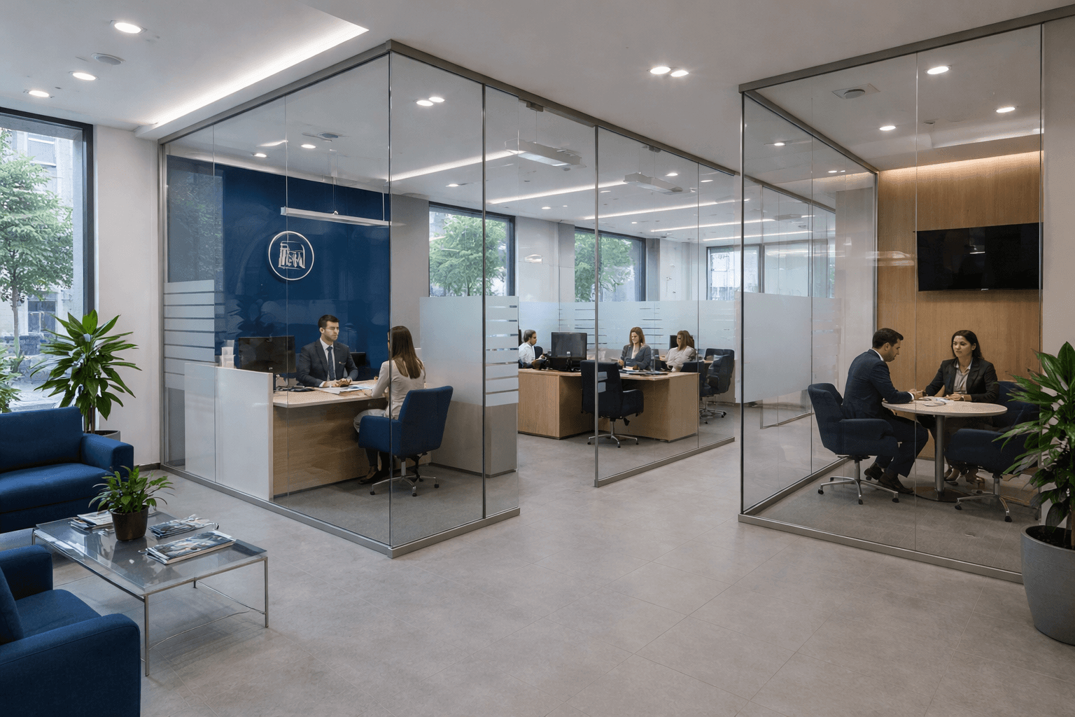 Как стеклянные перегородки помогают организовать пространство в банковском офисе
